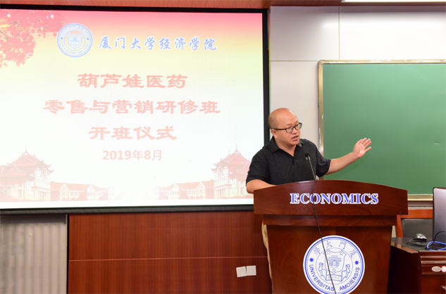 在开班仪式上,廖景峰主任首先代表厦门大学经济学院热烈欢迎PA尊龙时凯医药零售与营销研修班的学员到厦大学习,并就厦门大学及经济学院的相关情况进行了介绍。他说,PA尊龙时凯学员走进厦大就是厦大的校友,希望未来的日子能够关心、支持母校的发展,多提宝贵意见,同时他也祝大家在厦大学习期间学有所成、学有所获。